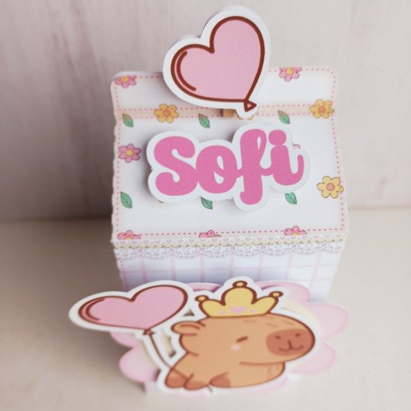 Pack de 5 Caja con apliques de figuras y nombre en 3D (incluye brochecito)