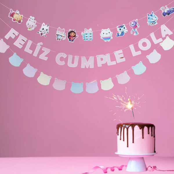 • Una guirnalda con texto personalizable, donde se puede colocar, "Nombre" "Feliz Cumpleaños", etc., al hacer el pedido (indicar en nota de checkout),